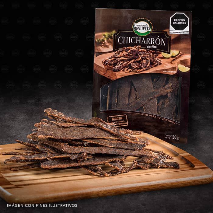 Prueba el delicioso y único sabor de nuestro chicharrón de res, listo para su consumo, no te lo puedes perder.