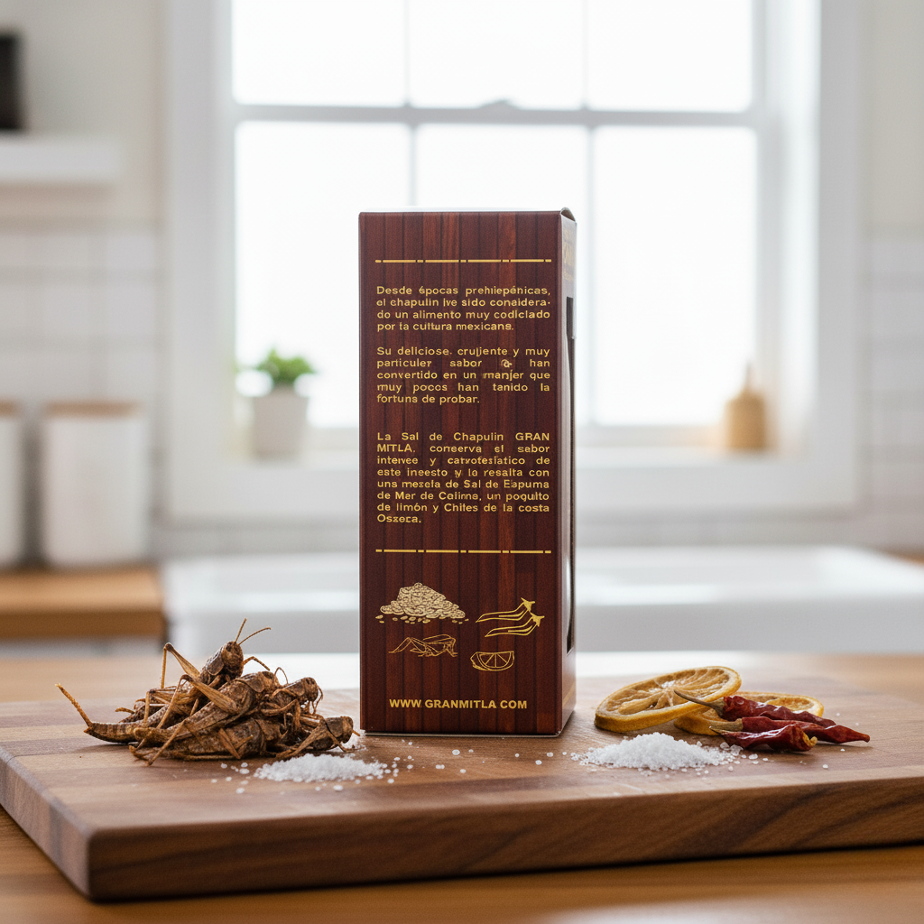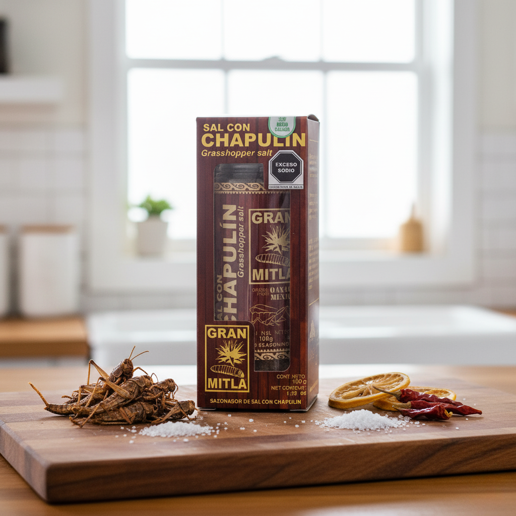 Sal tradicional oaxaqueña elaborada con chapulín tostado, sal de mar de Colima, limón y chiles de la costa. Crujiente, intensa y con ese sabor único que solo el sur de México sabe ofrecer. Perfecta para mezcal, botanas, frutas o platillos con carácter.