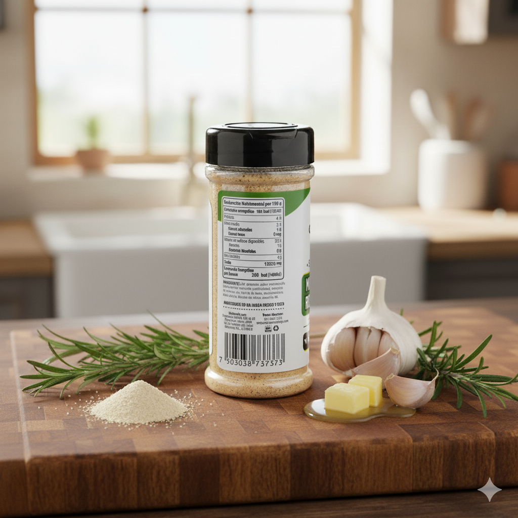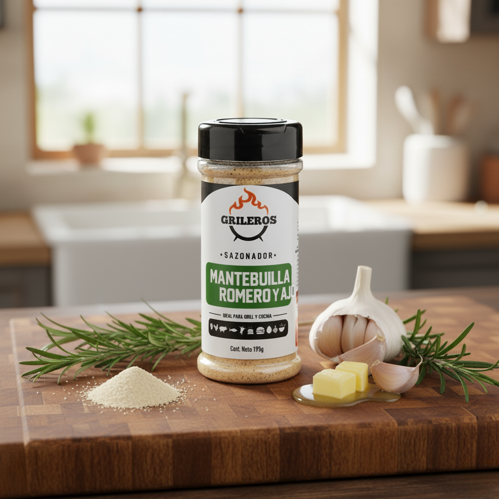 Una mezcla irresistible que combina el sabor suave de la mantequilla con el aroma del romero y el toque sabroso del ajo. Ideal para sazonar papas, pollo, vegetales, pan o cualquier platillo al horno o a la parrilla.
